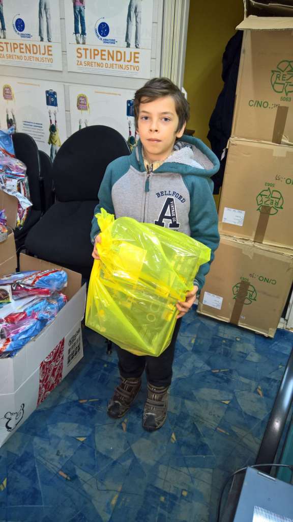 Dio paketića je podijeljen direktno učenicima iz Centra Vladimir Nazor i Centra za slijepu i slabovidnu djecu Neđarići.